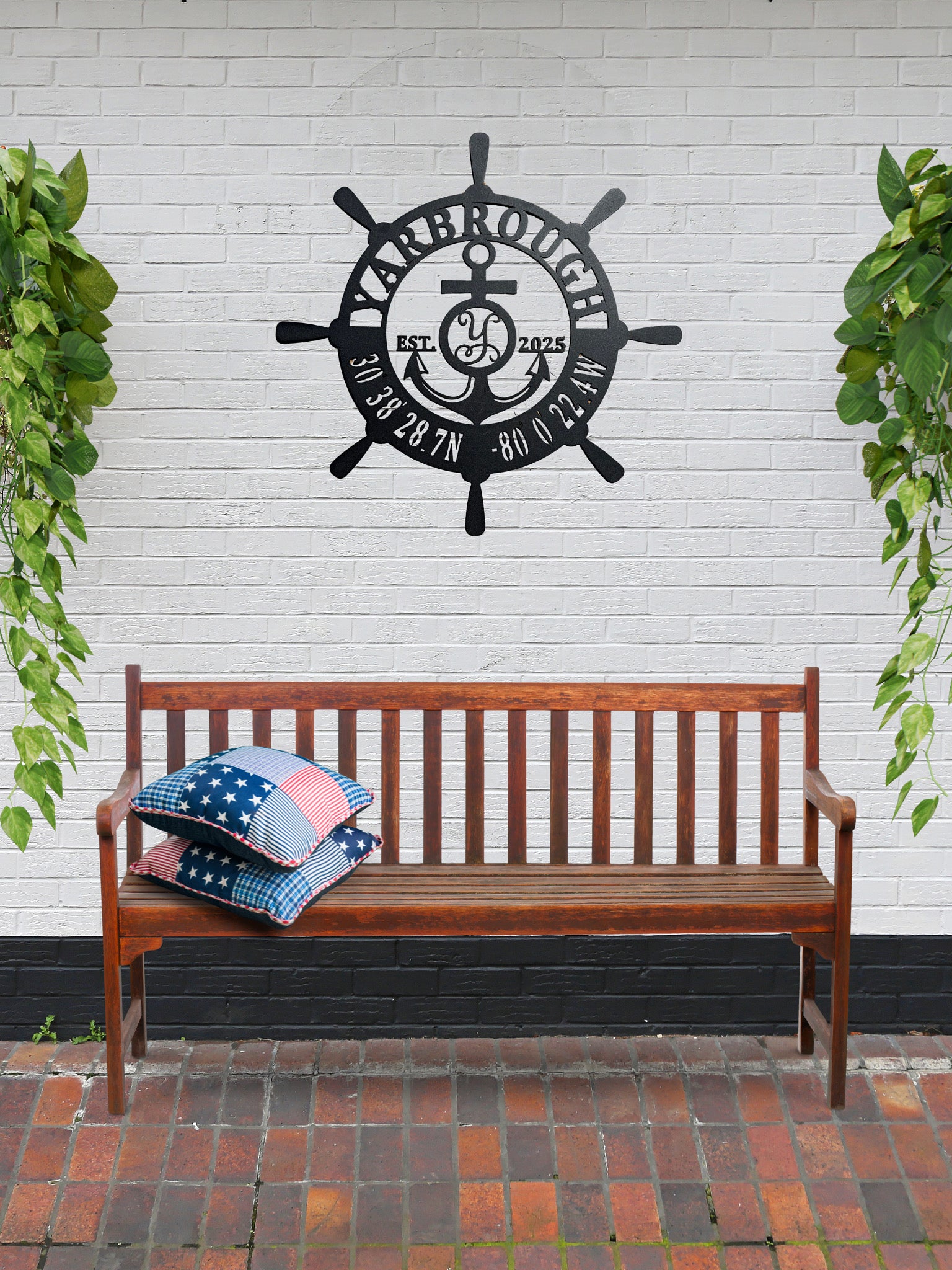 Transform your outdoor space with this stunning custom ship's wheel sign from Lucky 7 Metals! Crafted from durable metal, this handcrafted piece features a nautical design with personalized details, perfect for adding a unique touch to your home or garden. Ideal as a thoughtful gift or a bold statement piece. Order your today and set sail with style!
